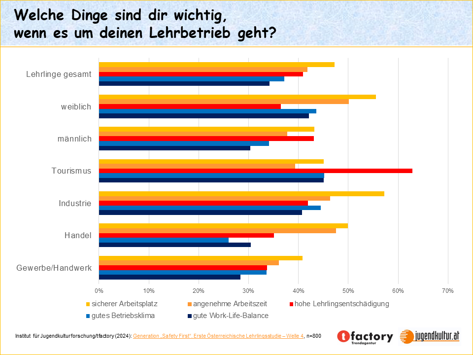 Persönliche Einladung zur PressekonferenzLehrlingsstudie 2024: Generation „Safety First“ – 21.3.2024, 10:00SAVE THE DATE: Pressekonferenz Lehrlingsstudie 2024: Generation „Safety First“- die große neuen Eigenstudie des Instituts für Jugendkulturforschung in Kooperation mit tfactory: top-aktuelle Repräsentativumfrage unter 800 Lehrlingen bundesweit präsentiert von Studienautor Prof. Mag. Bernhard Heinzlmaier – mit Spezialauswertung für die Branchen Handel, Gewerbe/Handwerk, Industrie und Tourismus/Freizeitwirtschaft sowie Trendanalyse auf Basis von Zeitreihendaten über die letzten acht Jahre